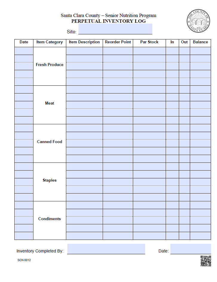 - Inventory procedures shall be established and used when required by the County Senior Nutrition Program.