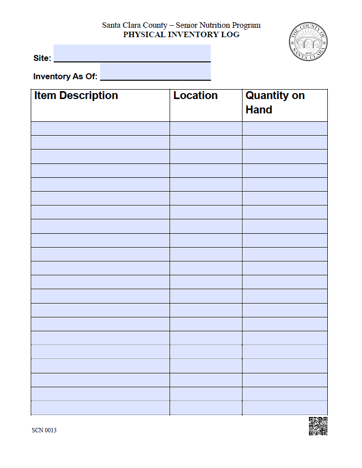 - In the inventory form (Form: Physical Inventory Log), record item description and quantity on hand.